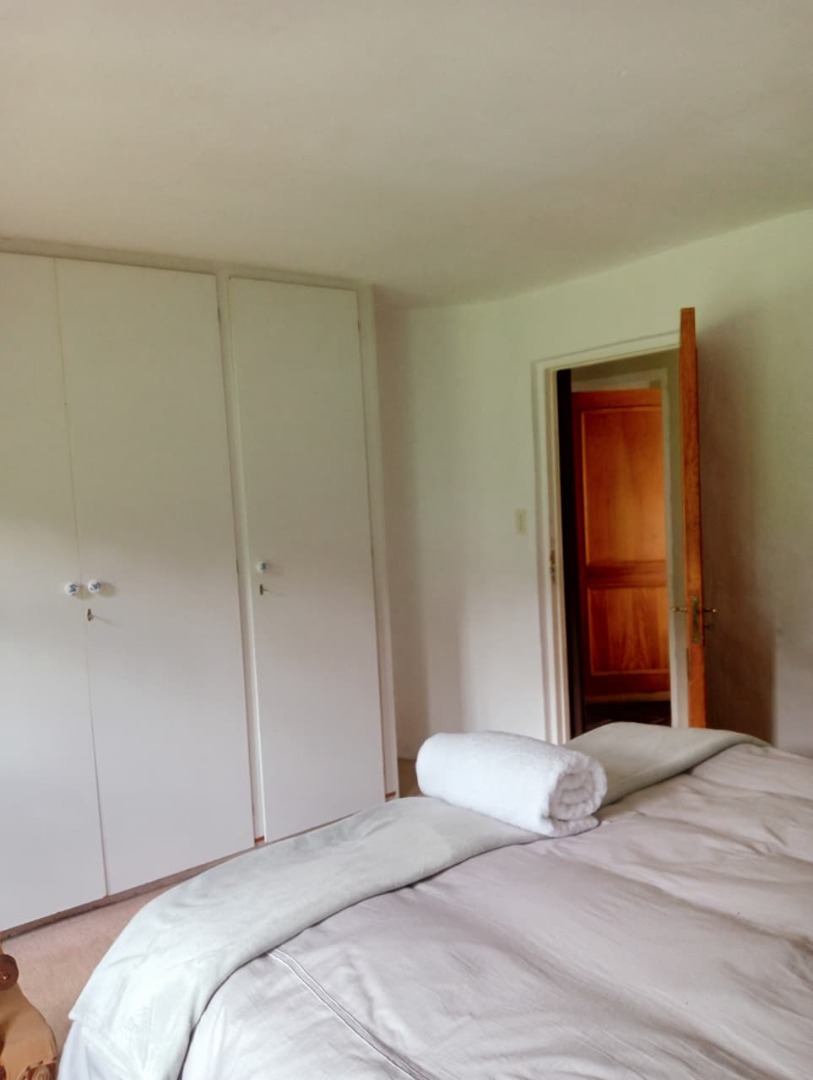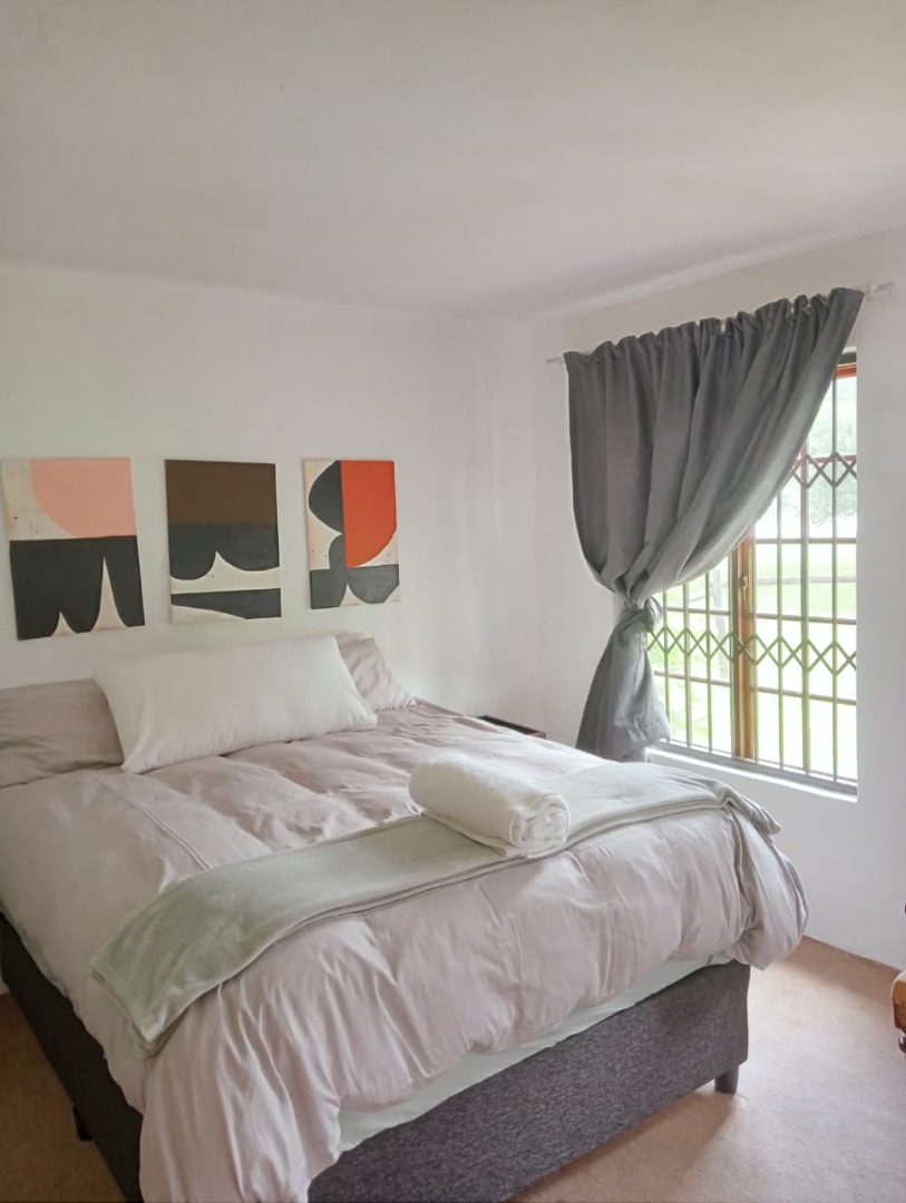 The cottage provides a comfortable and well-designed living experience. The open-plan lounge, dining area, and kitchen create an inviting atmosphere, and the private patio leads into an enclosed garden area. The property includes a washing machine, uncapped internet at no extra charge, and shared use of a swimming pool and poolside braai area. Security features include an electric fenced perimeter, night security, and twenty-four-hour camera monitoring. The lease is offered on a month-to-month basis. Viewings are by appointment only.
