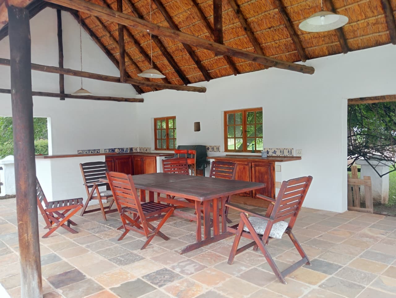 Estate living enhances the experience further. Residents enjoy natural surroundings featuring open lawns, mature trees, and the presence of free-range chickens, ducks, and geese. The estate is shared with a main house and one additional cottage, ensuring a sense of community while maintaining personal privacy. Garden services and general estate maintenance are included. Although serene and rural in character, the estate remains conveniently close to leading schools, shopping centres, and the commercial districts of Midrand.