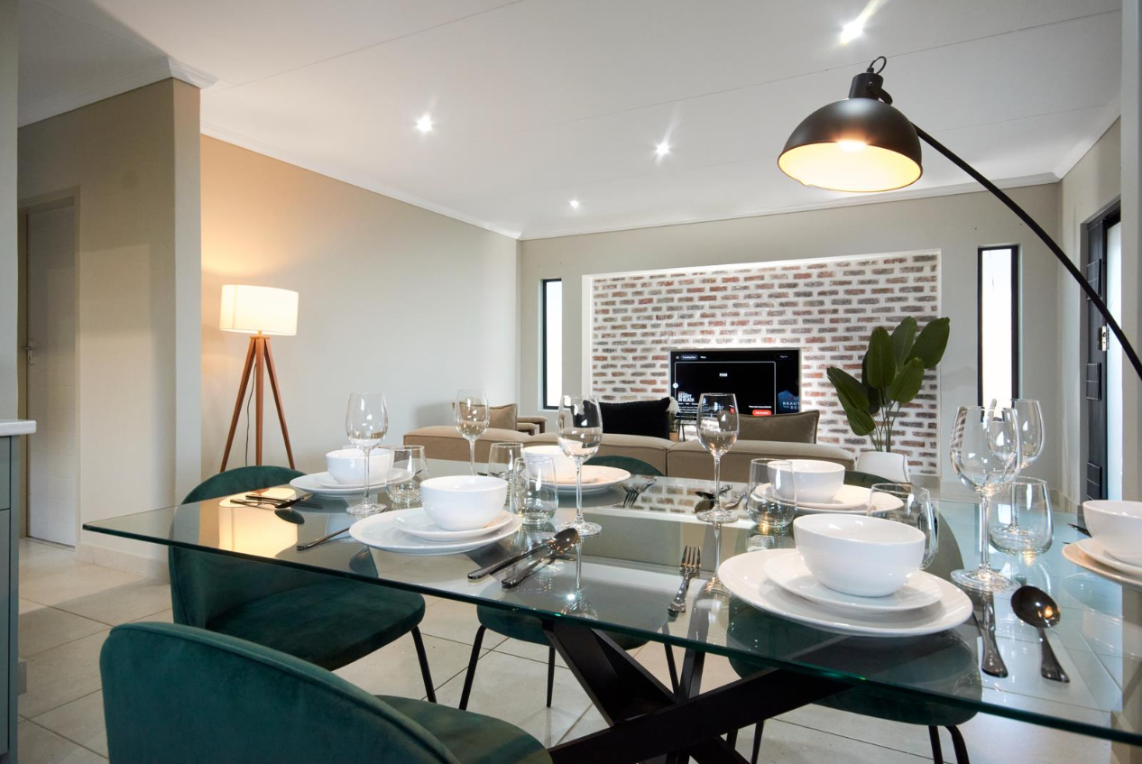 This spacious home features three well-sized bedrooms and two modern bathrooms, including a stylish en-suite master bedroom designed for comfort and privacy. The open-plan living and dining area creates a seamless flow, ideal for both relaxed family living and entertaining guests. Large doors open onto a private patio and garden, providing a peaceful outdoor space where you can unwind or enjoy weekend braais.
