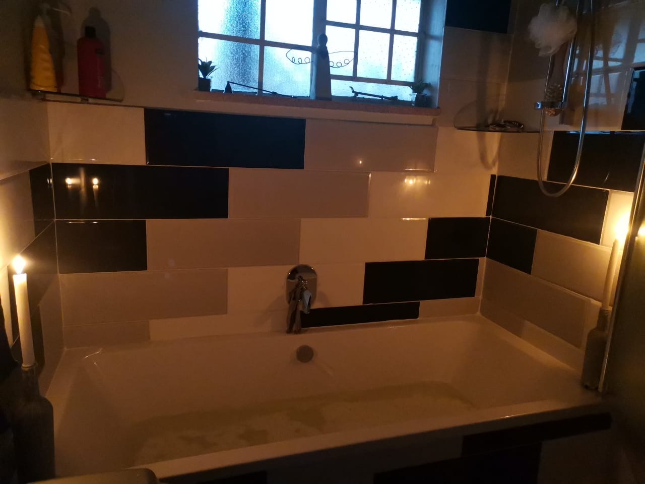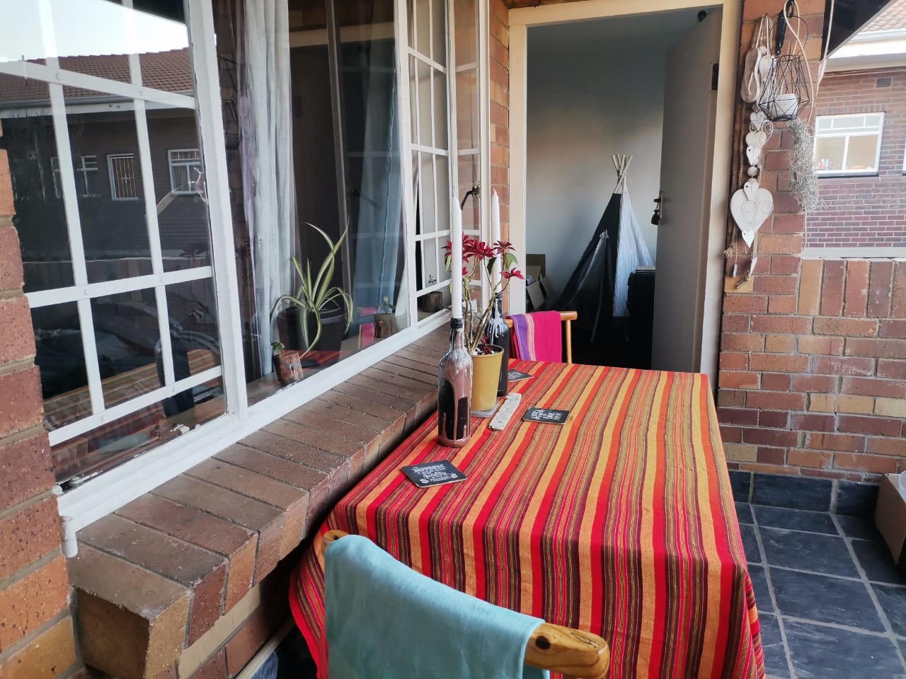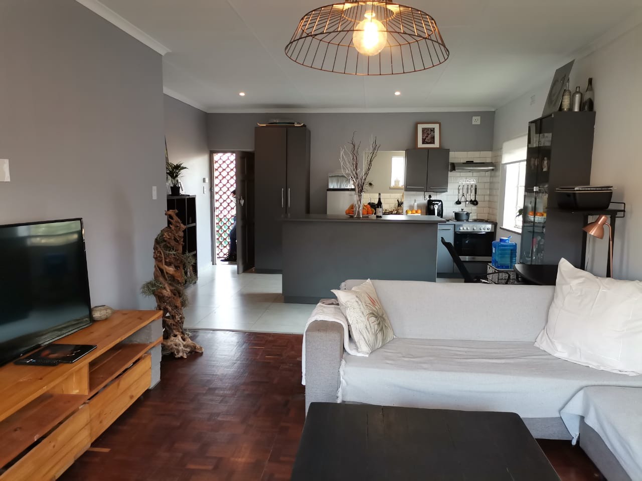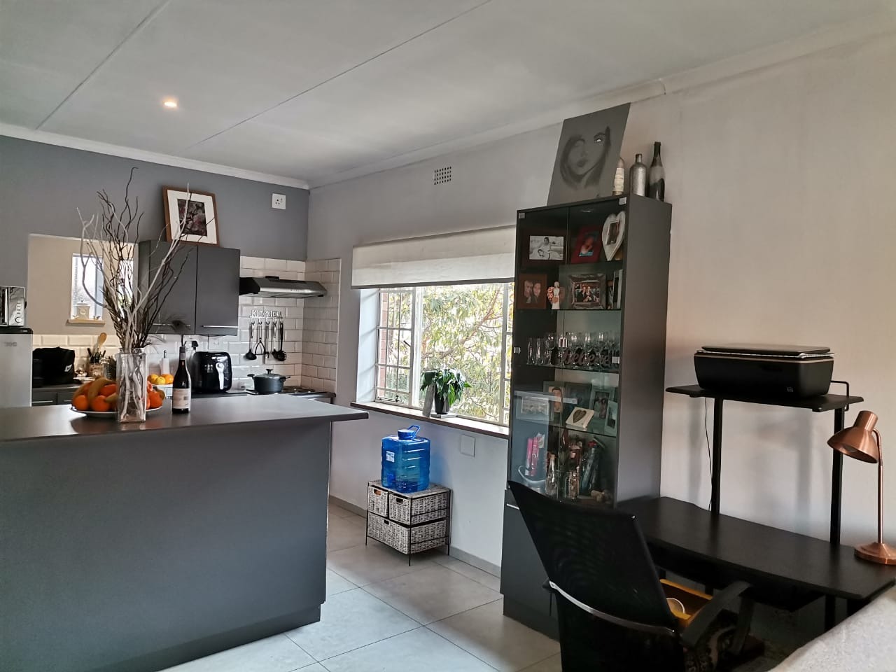 The tiled kitchen is well laid out and equipped with a standard stove, complemented by a separate tiled scullery for added functionality and discreet storage.