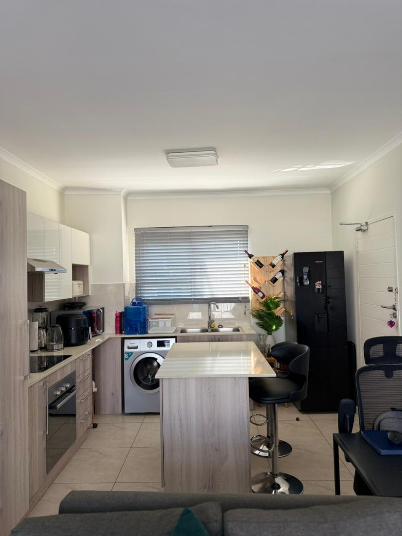 This home offers two spacious bedrooms, both fitted with built-in cupboards, and a full bathroom featuring both a bath and shower. The open-plan living area flows beautifully into a modern kitchen, designed with ample cupboard space and quality finishes, creating an inviting space for both cooking and entertaining.