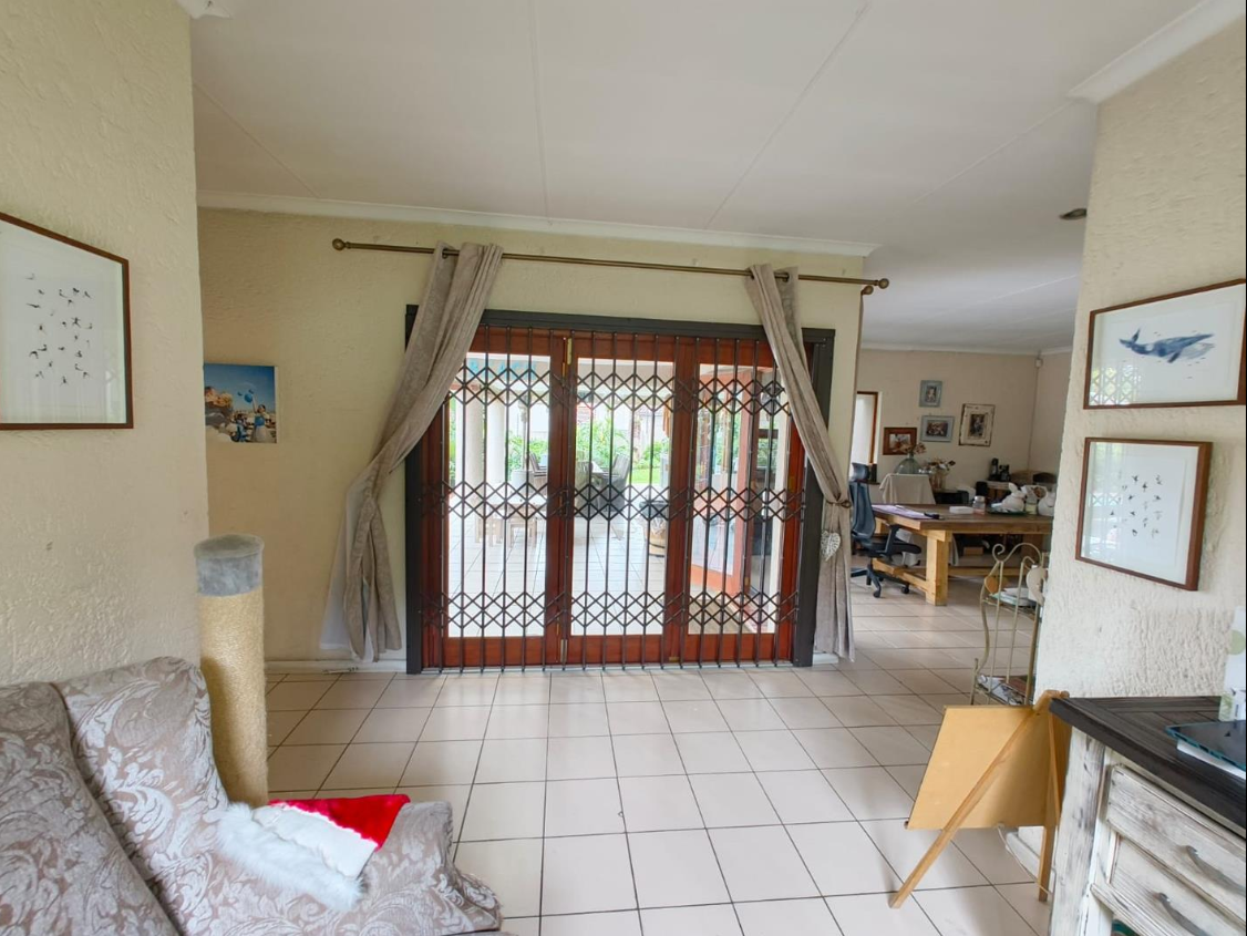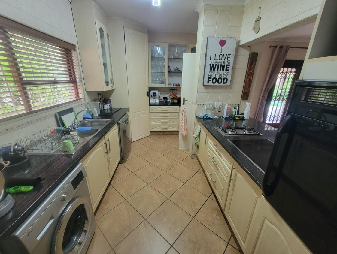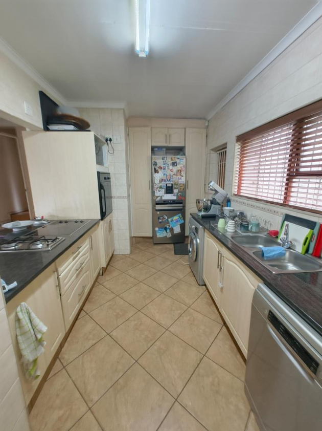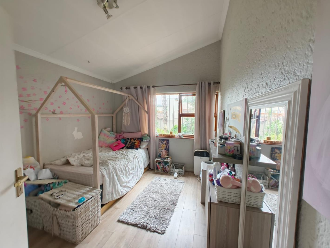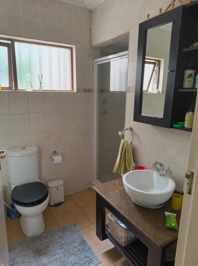 Step outside to a lush, well-established garden with a sparkling swimming pool, creating a private oasis perfect for summer days. The garden attracts a variety of birdlife, adding to the tranquil, nature-filled atmosphere. A large covered patio with a built-in braai makes entertaining effortless, whether hosting family gatherings or relaxed weekend get-togethers.