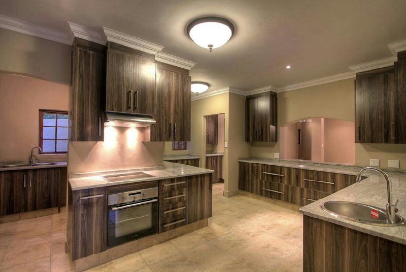 The kitchen is stylish and functional, featuring granite countertops and a breakfast nook, complemented by a separate scullery for added practicality.