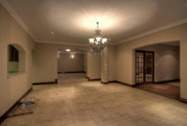 Living and entertainment spaces are abundant, beginning with a welcoming entrance hall that leads into a spacious open-plan reception area with tiled floors. The open-plan dining room flows seamlessly into the living areas, while the family lounge, finished with laminate flooring and a charming wood-burning fireplace, provides a warm and inviting space to relax. A separate TV room with tiled flooring opens onto a private outdoor courtyard, creating an ideal setting for both indoor and outdoor enjoyment.