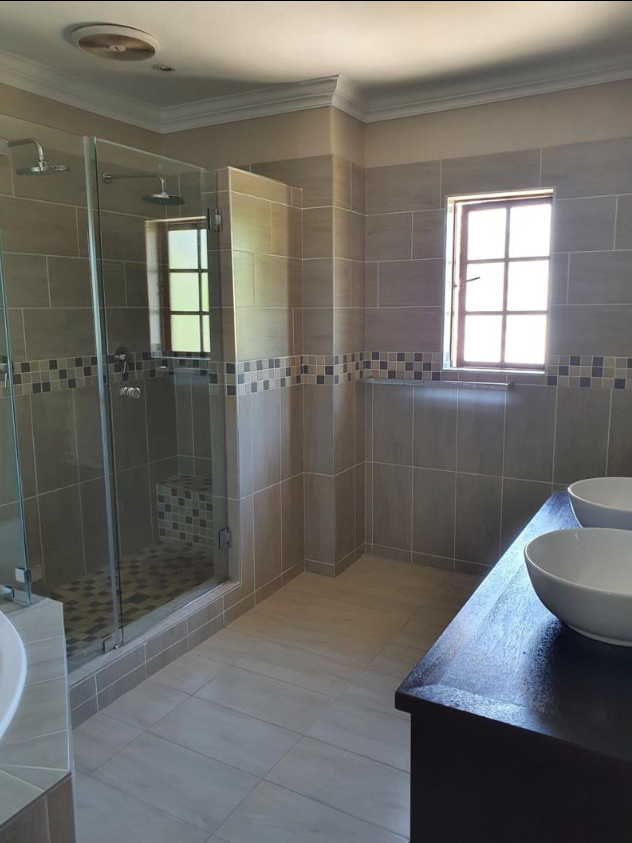Outside, the property offers a covered patio and braai area overlooking a beautifully landscaped garden with a swimming pool and computerized irrigation system, perfect for entertaining or relaxing in a tranquil setting. Additional features include a Victron solar system with backup batteries, fibre connectivity, a tiled roof, plastered exterior walls, and wood-framed windows. The property is also pet friendly.
