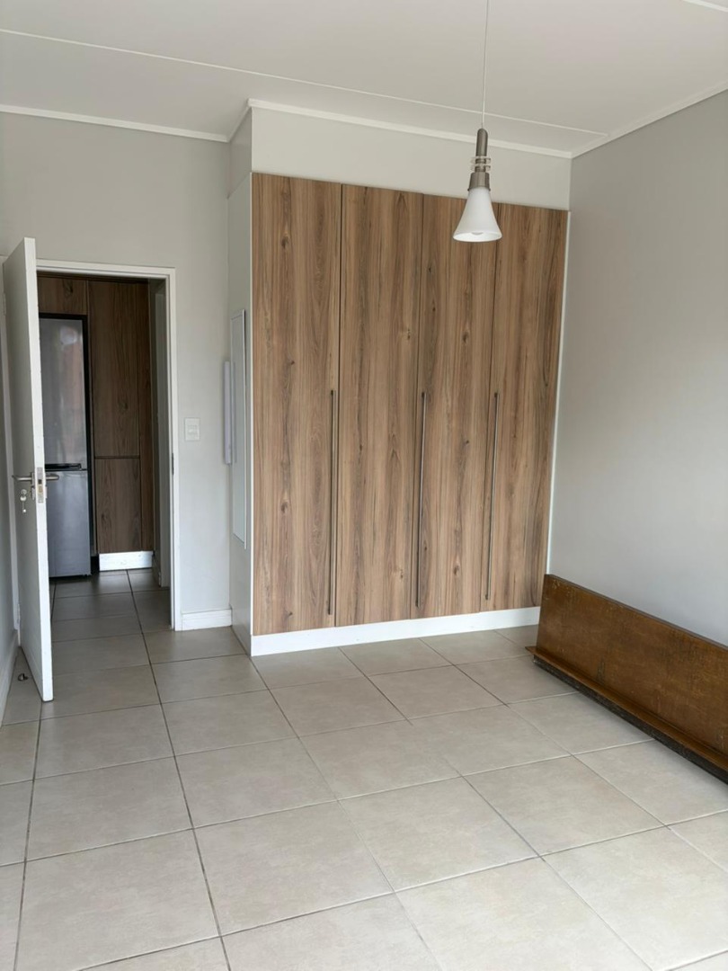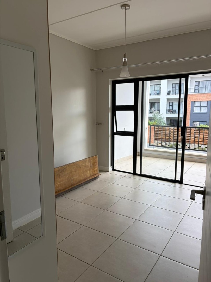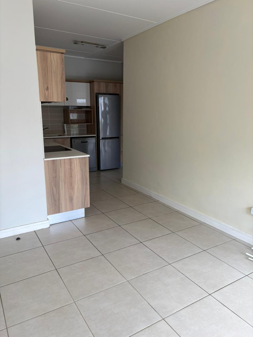 The unit offers an open-plan living area with a modern, well-appointed kitchen that flows seamlessly into the lounge and leads out onto a private balcony—perfect for relaxed living. The bedroom is spacious with built-in cupboards, and the apartment is completed by a contemporary bathroom with quality finishes.
