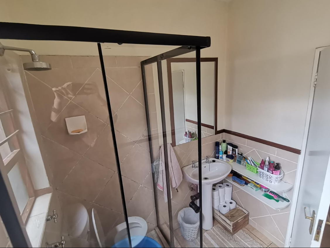 Both bedrooms are light and airy with built-in cupboards and the main bedaroom overlooks the garden. The bathroom has a toilet, shower and basin.