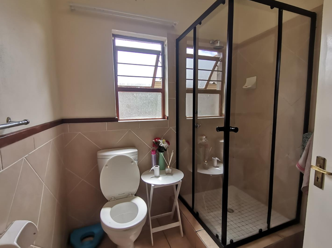 Both bedrooms are light and airy with built-in cupboards and the main bedaroom overlooks the garden. The bathroom has a toilet, shower and basin.