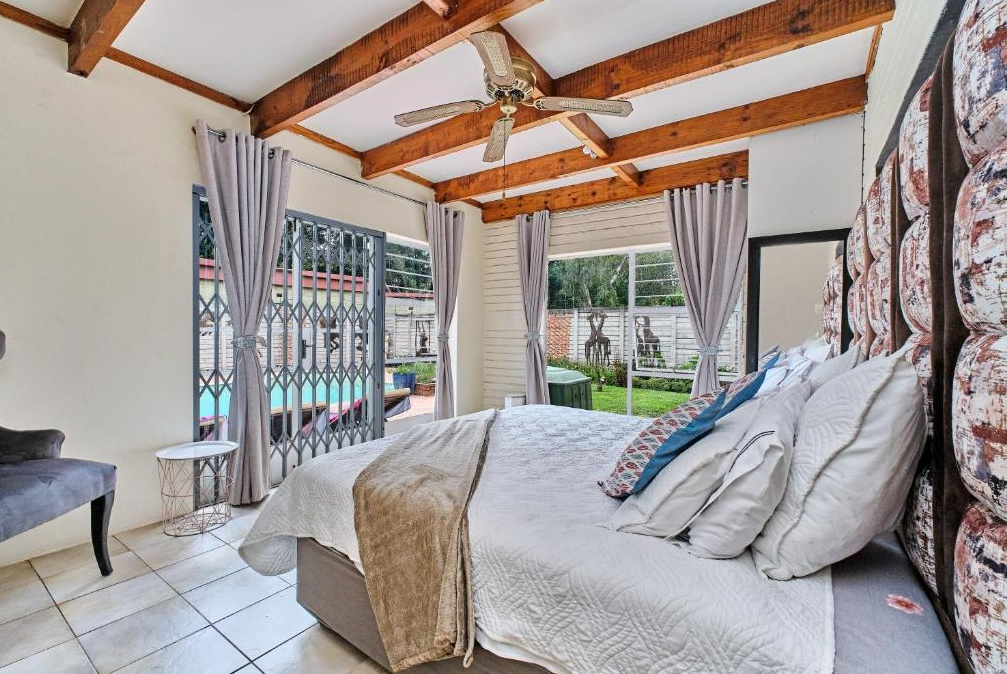 Exceptionally spacious accommodation in Johannesburg, featuring five well-sized bedrooms and three bathrooms, making it ideal for a large family or group.