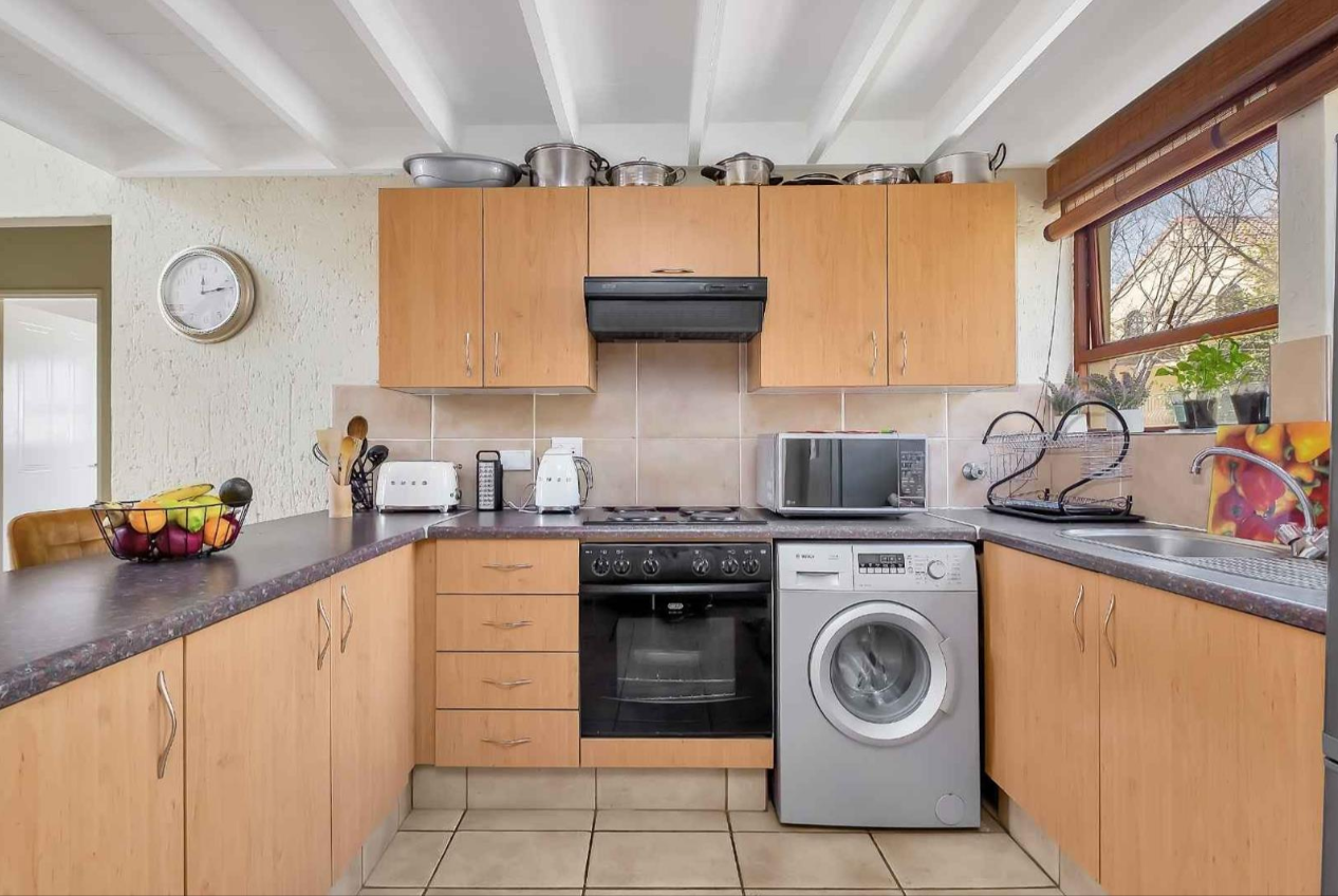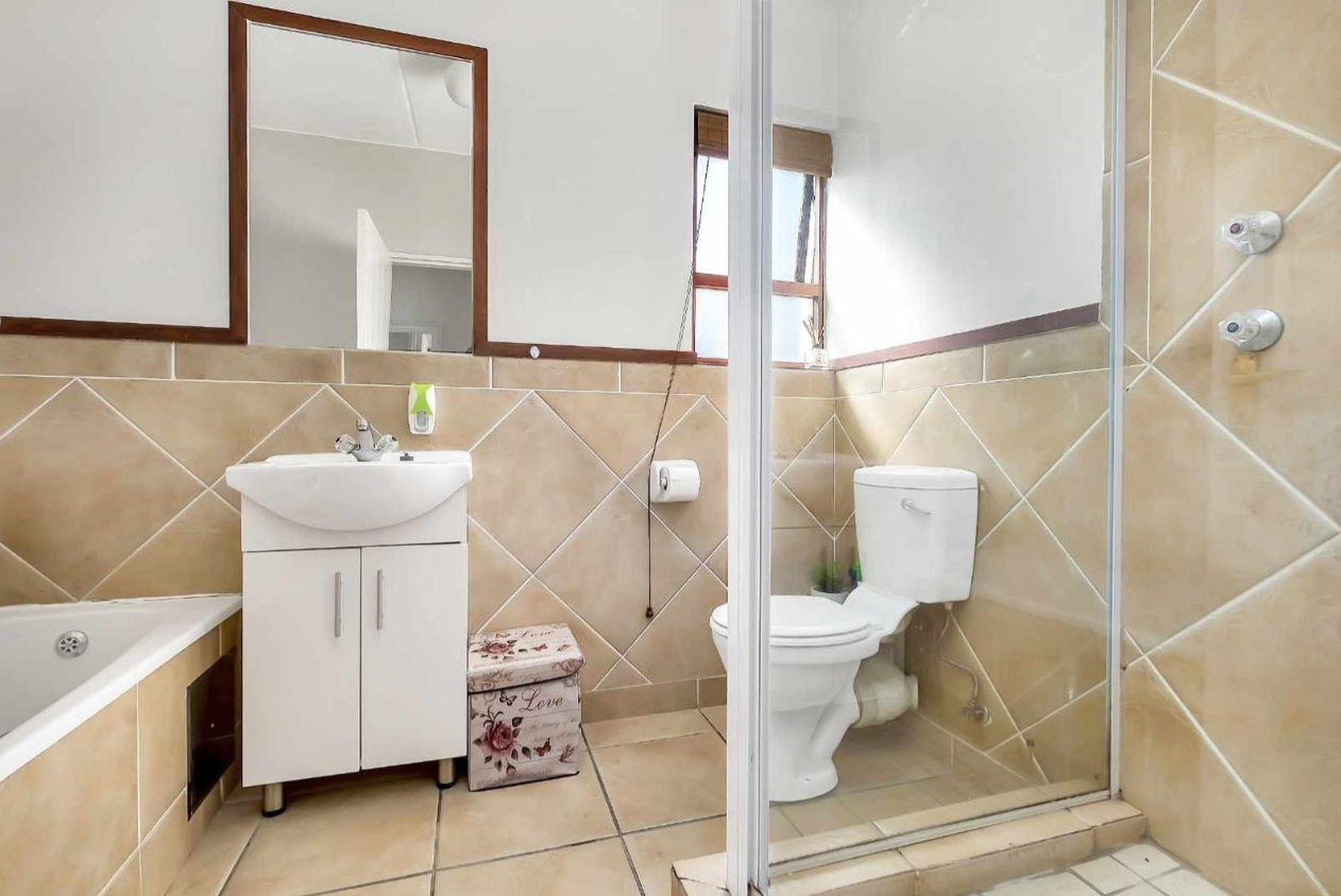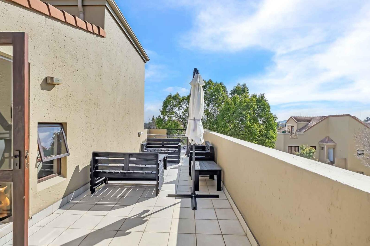 Both bedrooms are generously sized and fitted with ample built-in cupboards, with the main bedroom enjoying direct access to the first-floor patio. The apartment is serviced by one full bathroom finished with stylish, contemporary fittings. A wooden staircase leads to a cosy loft area, ideal for use as a second lounge, TV room, or study/home office. From the loft, sliding doors open onto a large private terrace, perfect for entertaining, braais, or simply relaxing while enjoying expansive views.